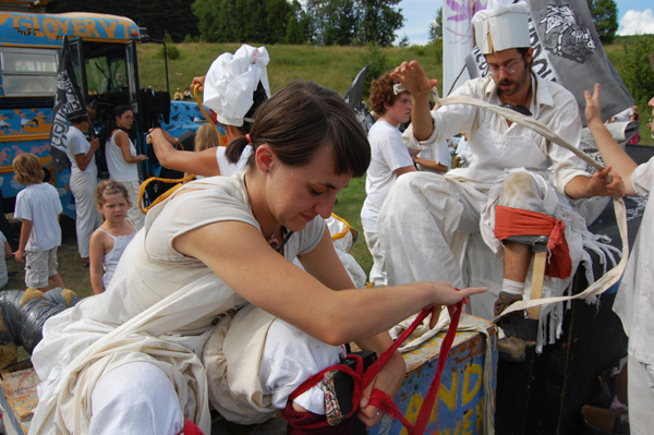 Stilters preparing for the "Sourdough Philosophy Circus."