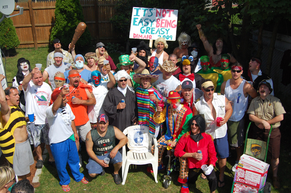 Saturday Greasy Pole walkers celebrate before the contest at a party at Peter "Black" Frontiero's Pine Street home.