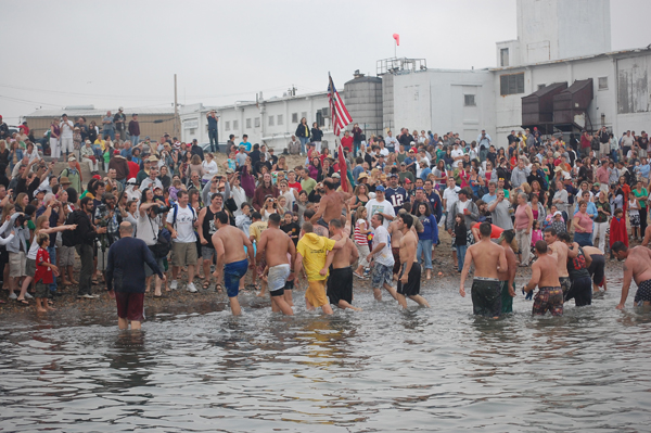 Walkers carry Saturday Greasy Pole winner Joe "Rocky" Stelline onto Pavillion Beach.