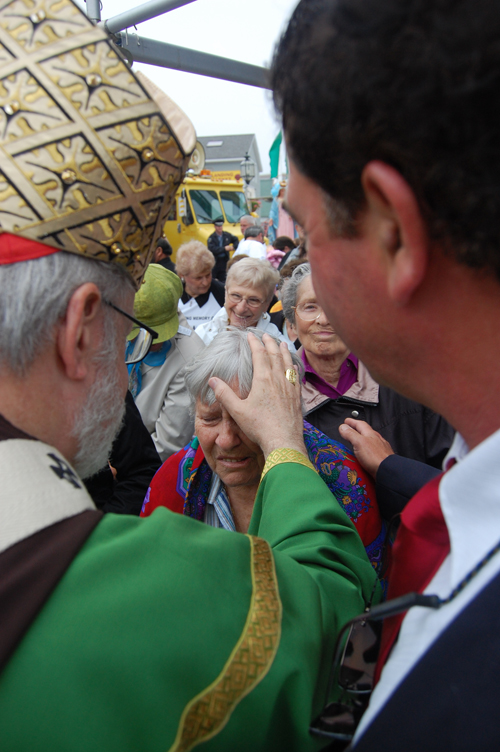 Cardinal Sean O'Malley blesses a woman during the Fiesta Mass in St. Peter's Square.