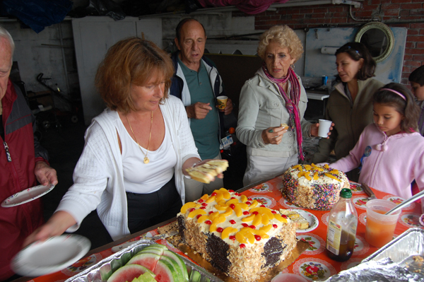 At Nina Conti's Fiesta party at her Western Avenue home, a daughter serves cakes she baked.