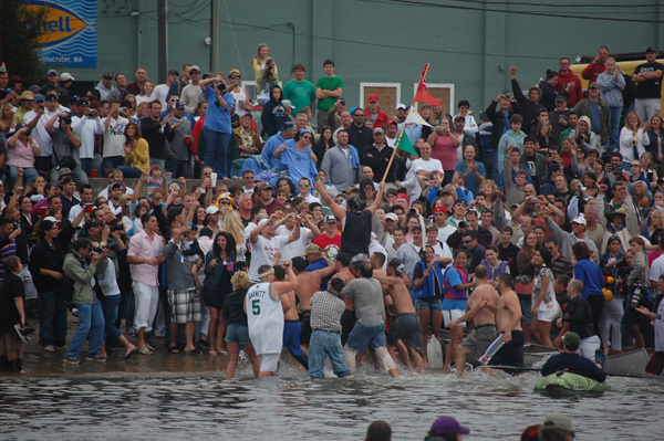 Stewart "Stewy" McGillivray is carried onto Pavillion Beach after winning the Greasy Pole contest for the fourth time and earing his place on the list of all time Greasy Pole greats.